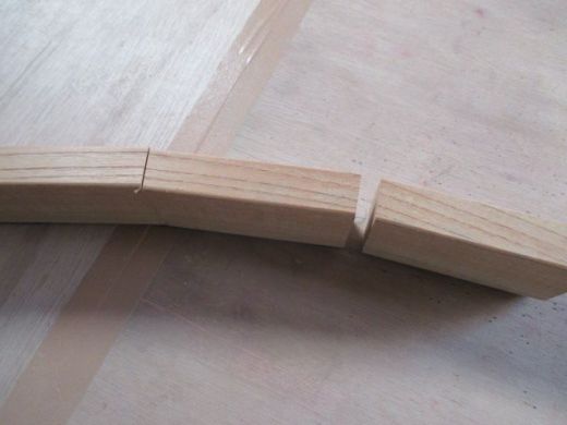 レンガ縁取りでは、味気ないのでケヤキ板をアーチ形に接着します。